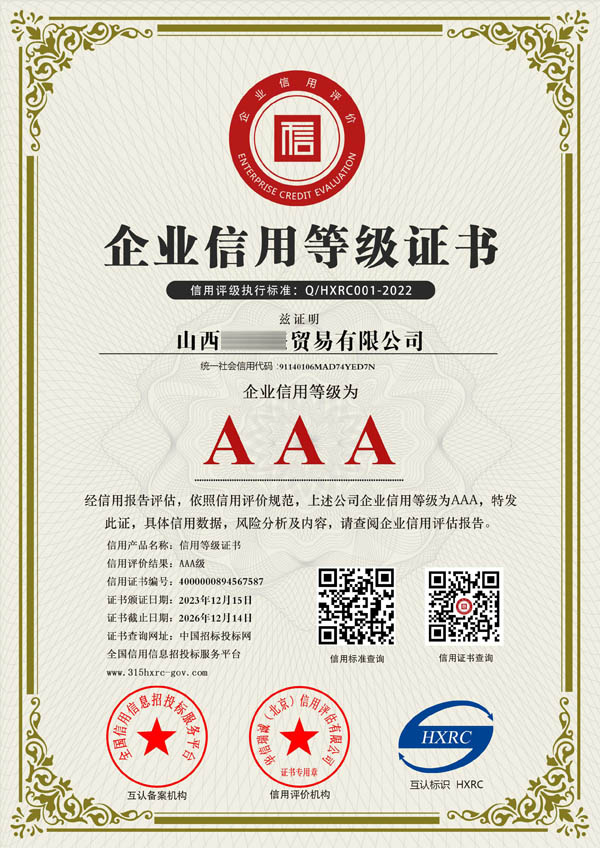 山西AAA企業(yè)信用評(píng)級(jí)網(wǎng)是從事企業(yè)認(rèn)證咨詢、各行業(yè)榮譽(yù)證書辦理的網(wǎng)站,認(rèn)證主要包含企業(yè)AAA信用等級(jí)證書、ISO體系認(rèn)證、服務(wù)認(rèn)證等認(rèn)證產(chǎn)品。出證快、價(jià)格優(yōu)。 企業(yè)AAA信用等級(jí)證書主要包含:AAA企業(yè)信用等級(jí)、AAA企業(yè)資信等級(jí)、AAA重合同守信用、AAA質(zhì)量服務(wù)誠信企業(yè)、AAA誠信經(jīng)營(yíng)示范單位、誠信企業(yè)家、誠信經(jīng)理人、AAA重質(zhì)量守信用、AAA重服務(wù)守信用、AAA誠信供應(yīng)商等。我們將一如既往繼續(xù)努力,能夠和您合作是我們的榮幸!山西AAA企業(yè)信用評(píng)級(jí)網(wǎng)本著“誠信、專業(yè)、優(yōu)質(zhì)、高效”的宗旨為廣大客戶提供全方位的認(rèn)證咨詢服務(wù),本公司愿與廣大的新老客戶真誠合作、攜手共進(jìn)! |